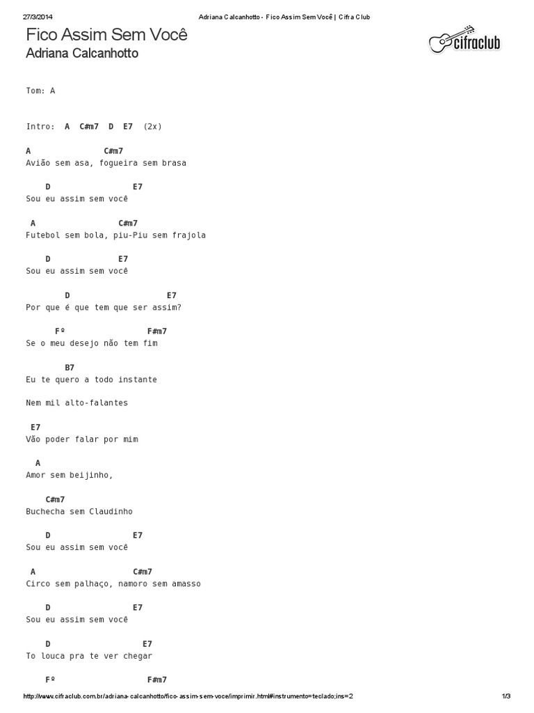 Adriana Calcanhotto Fico Assim Sem Voce Cifra Club Pdf