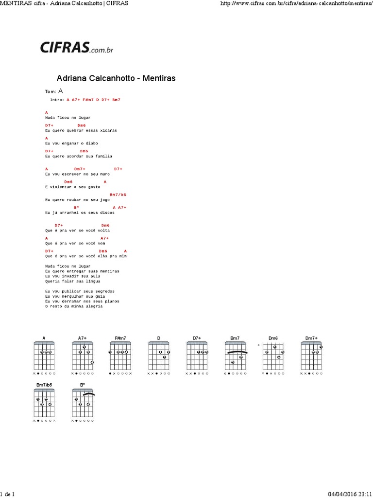 Mentiras Cifra Adriana Calcanhotto Cifras Pdf