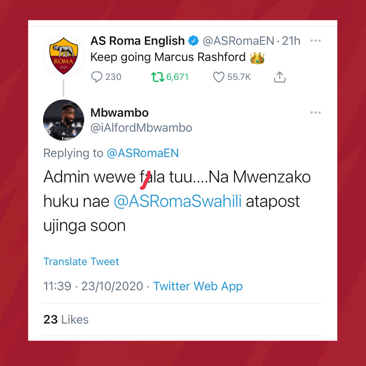 Italian club AS Roma on Wednesday become the first European club to launch an official Swahili Twitter account allowing it to interact with millions of. Twitter explodes as AS Roma appoint Jose Mourinho as manager. The Italian football giant created the account ASRomaSwahili on Wednesday posting a cheeky video initially created by American comedians Michael Key and Jordan Peele as its first tweet.